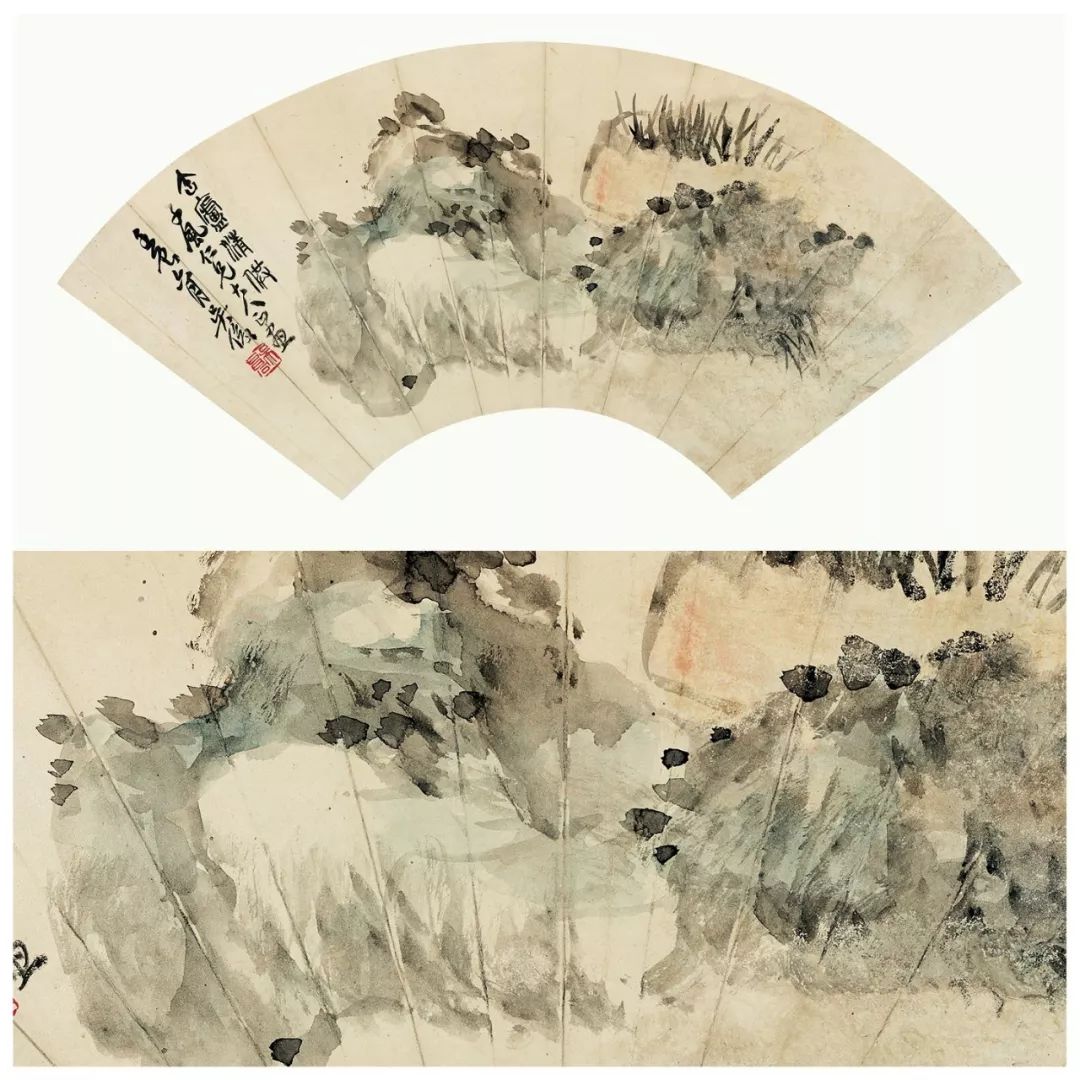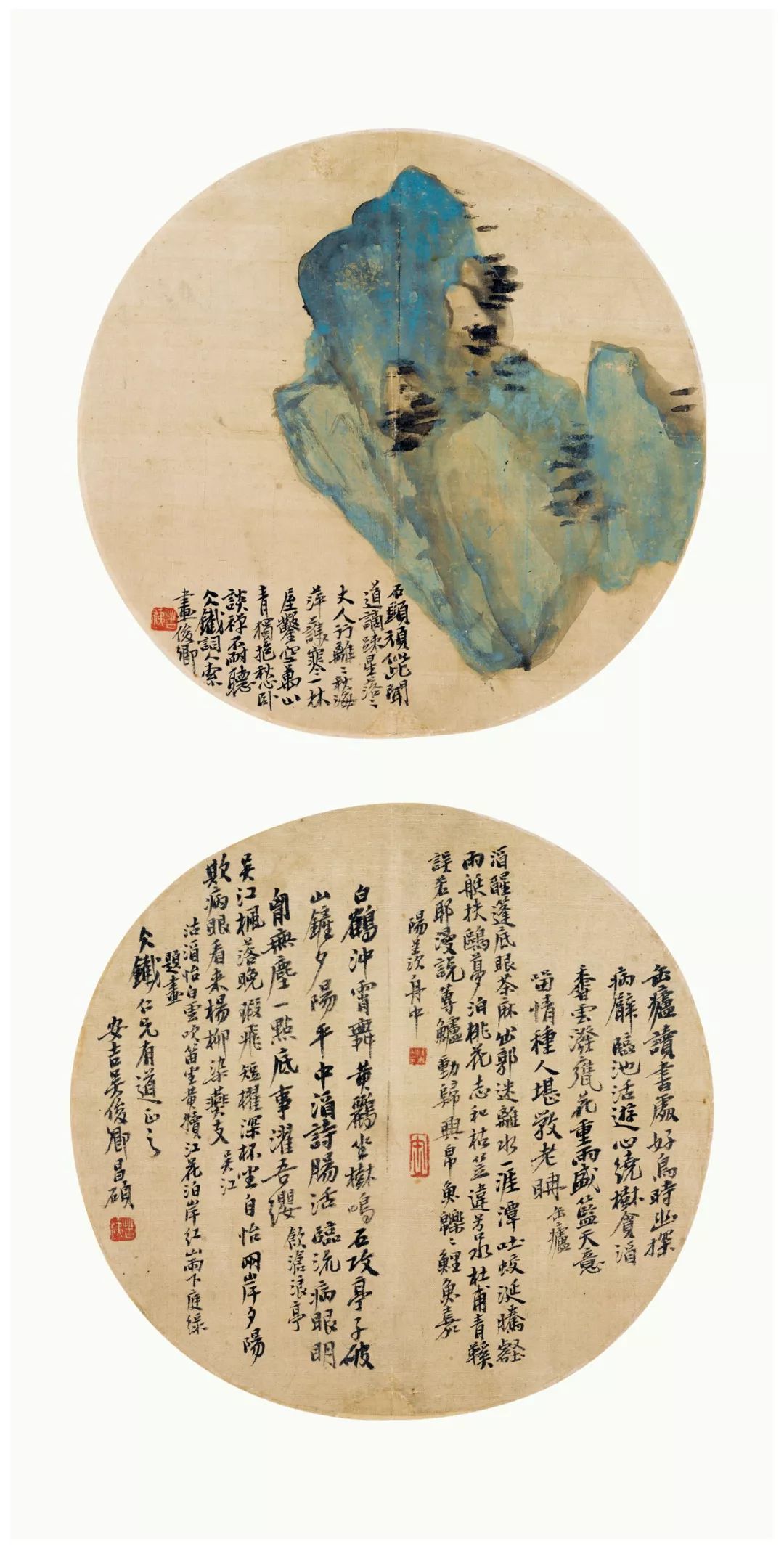 而下面这组,尤其是青绿山石,在吴昌硕的绘画中非常少见,整本《吴昌硕全集》,也没有几件: