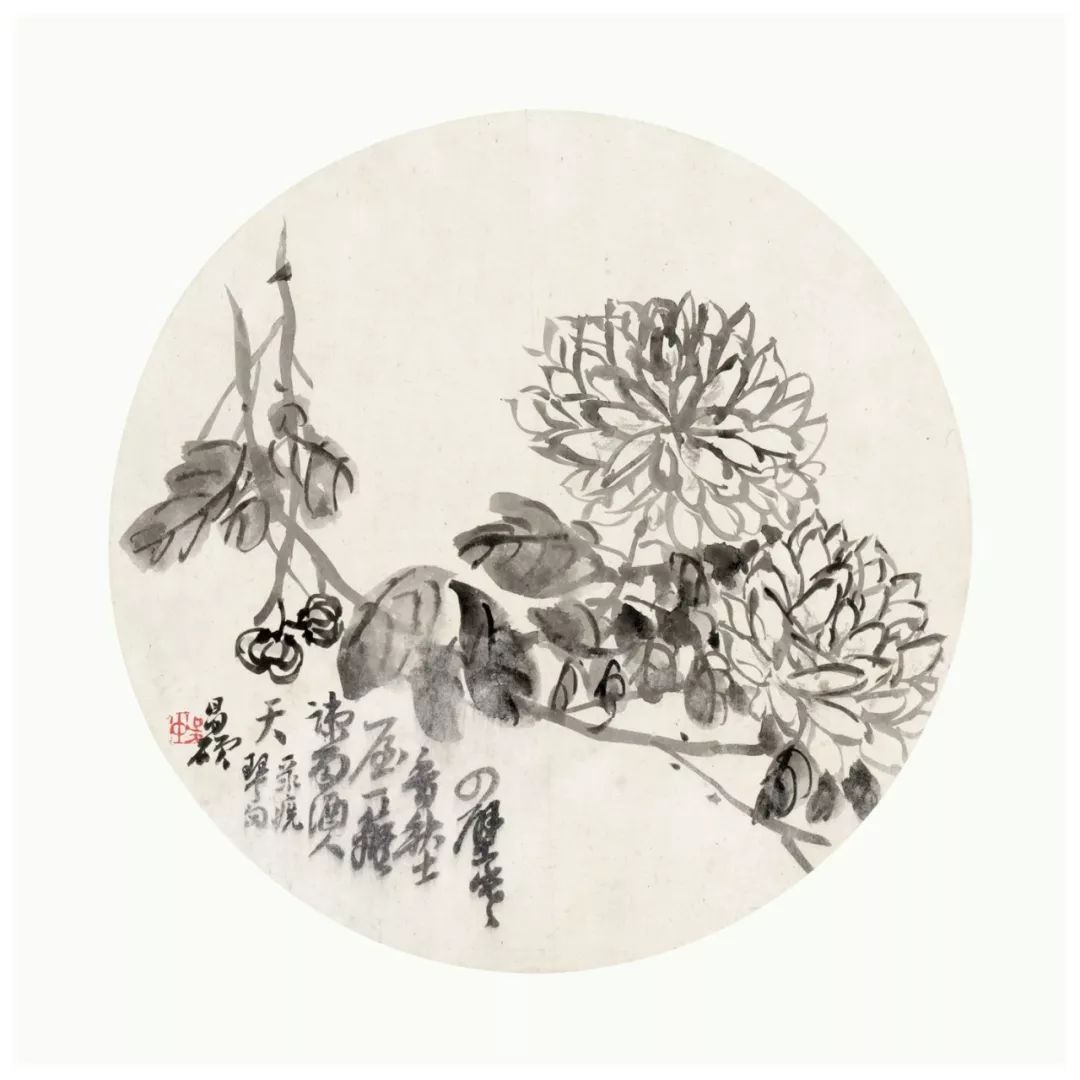 墙根鞠花可沽酒。老缶又画,时在癸亥客沪上。