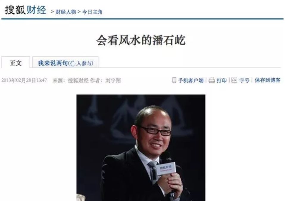 潘石屹好像忘了,望京SOHO关于风水的话题,还是他自己先提出来的。