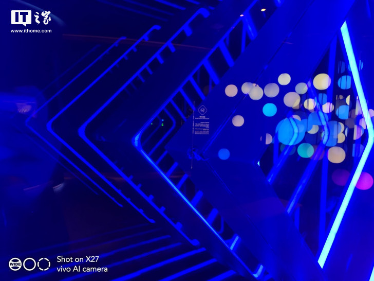 值得一提的是,连接二楼到一楼的楼梯,vivo还打造了一个充满了赛博朋克风的“RGB”楼梯间,并且在楼梯间的拐角,vivo还提供了一个“RGB”调色的按钮,通过这个按钮可以让整个楼梯间变换不同的色彩。