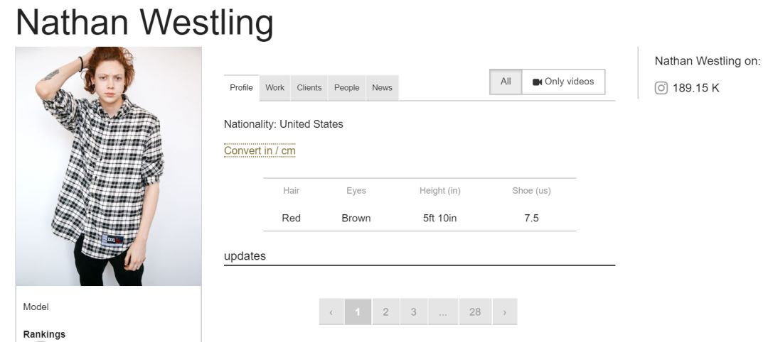 在经历增重20斤,服用6个月的睾酮素后,我们曾经的红发天使正式成为了一名跨性别者,而他的模卡也正式把名字改成了Nathan Westling。