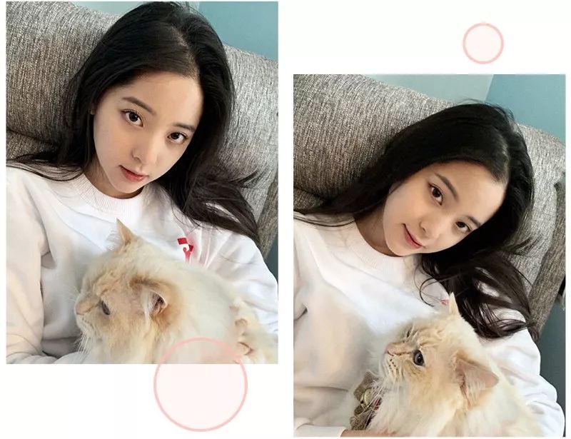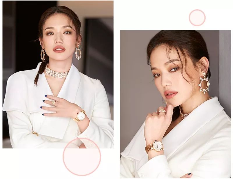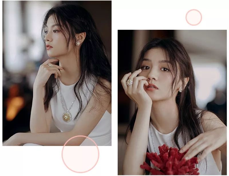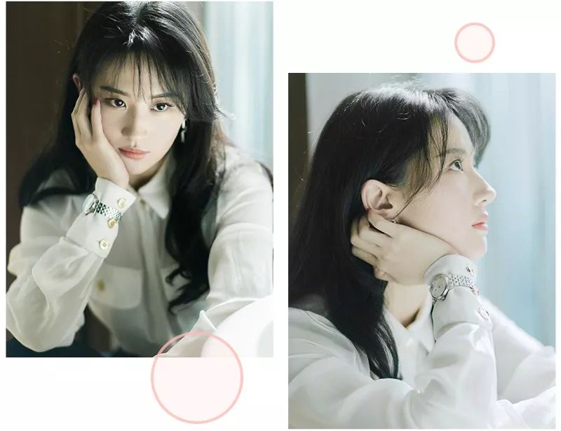 刘亦菲的五官则比较舒展大方,这张图是修过的,实际上刘亦菲的下颌、下巴应该会更圆润一些,留白会更多~