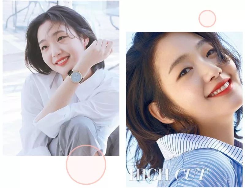 景甜的双眼皮其实还要更宽些,眼睛也是比较宽的类型。由双眼到嘴唇,能把人的视线集中在中部的三角形中,这种长相合照特别有优势!