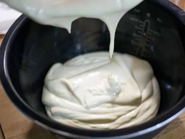 15、将全部面糊倒入抹完奶油的内锅。