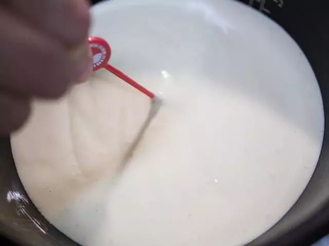 8、倒入牛奶慢慢搅拌均匀。