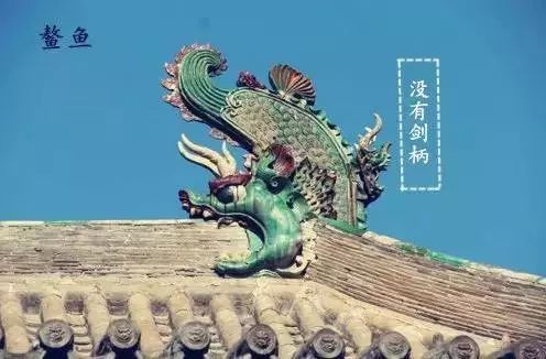和鸱吻不同的是:鳌鱼背后没有剑柄,它的信仰含义和鸱吻相同,都寄予着人们防火消灾、守护居庭的愿望。