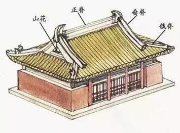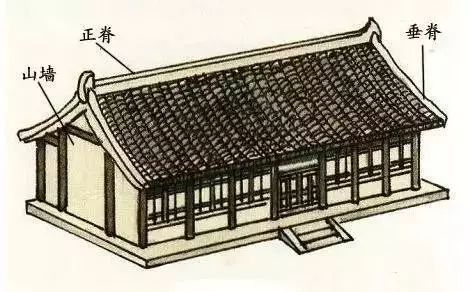 这是两坡顶,屋顶两端悬出山墙之外。悬山顶主要用于宫殿和寺庙中比较次要的殿堂和一般民居建筑上。