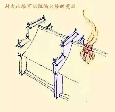 尤其在中国古代城镇街道和村庄,建筑密集,一栋接着一栋,鳞次栉比。这种封火山墙可以把每栋建筑隔开,能在一定程度上减少火灾大面积的蔓延。