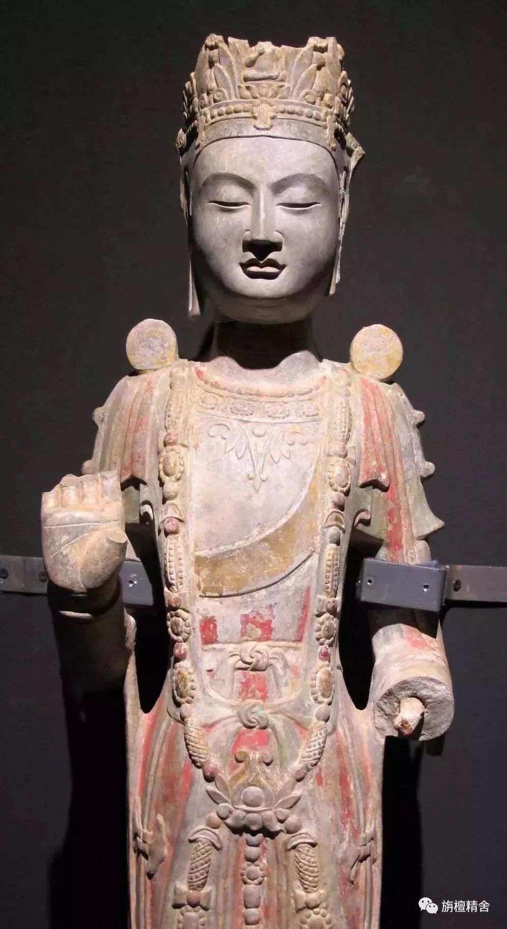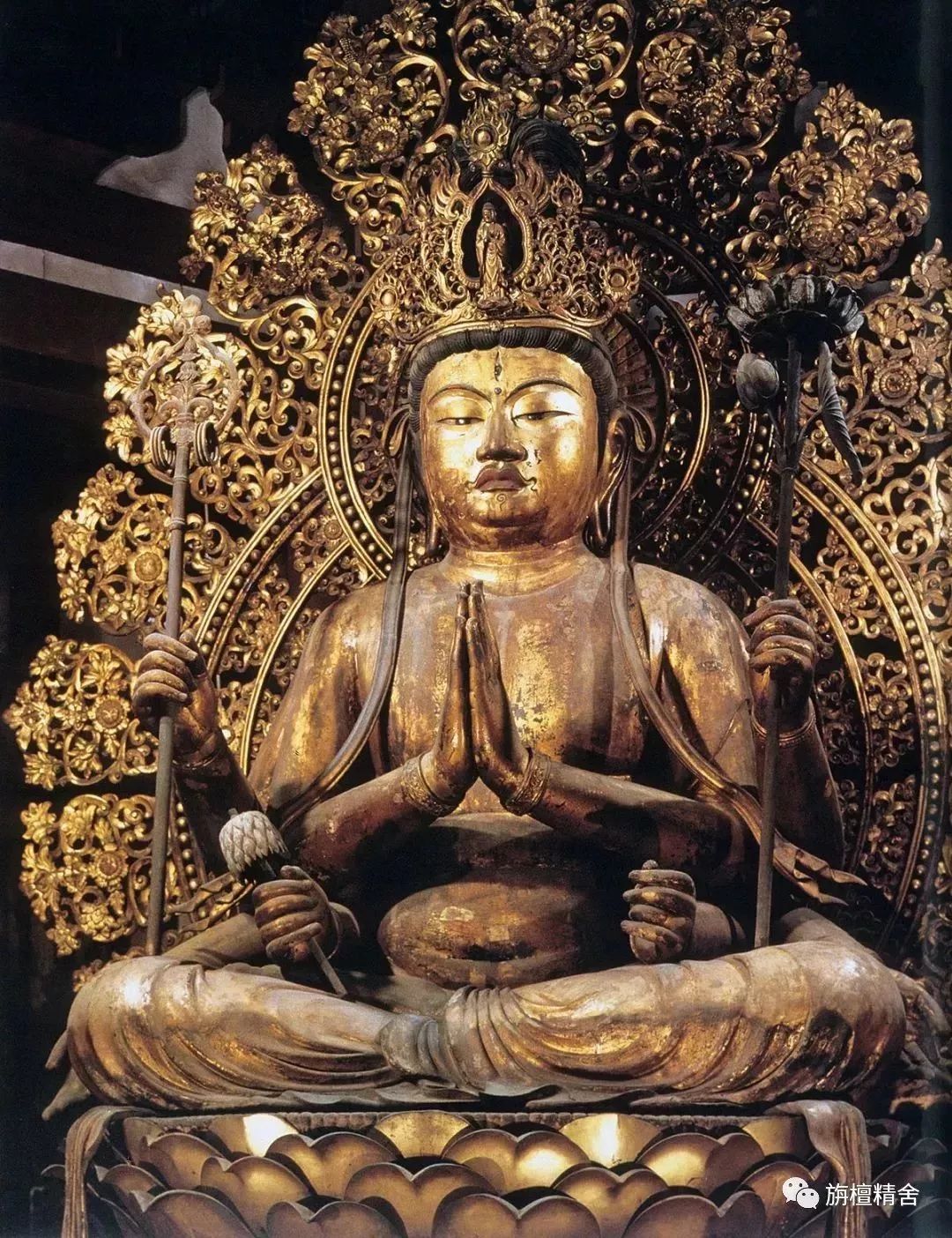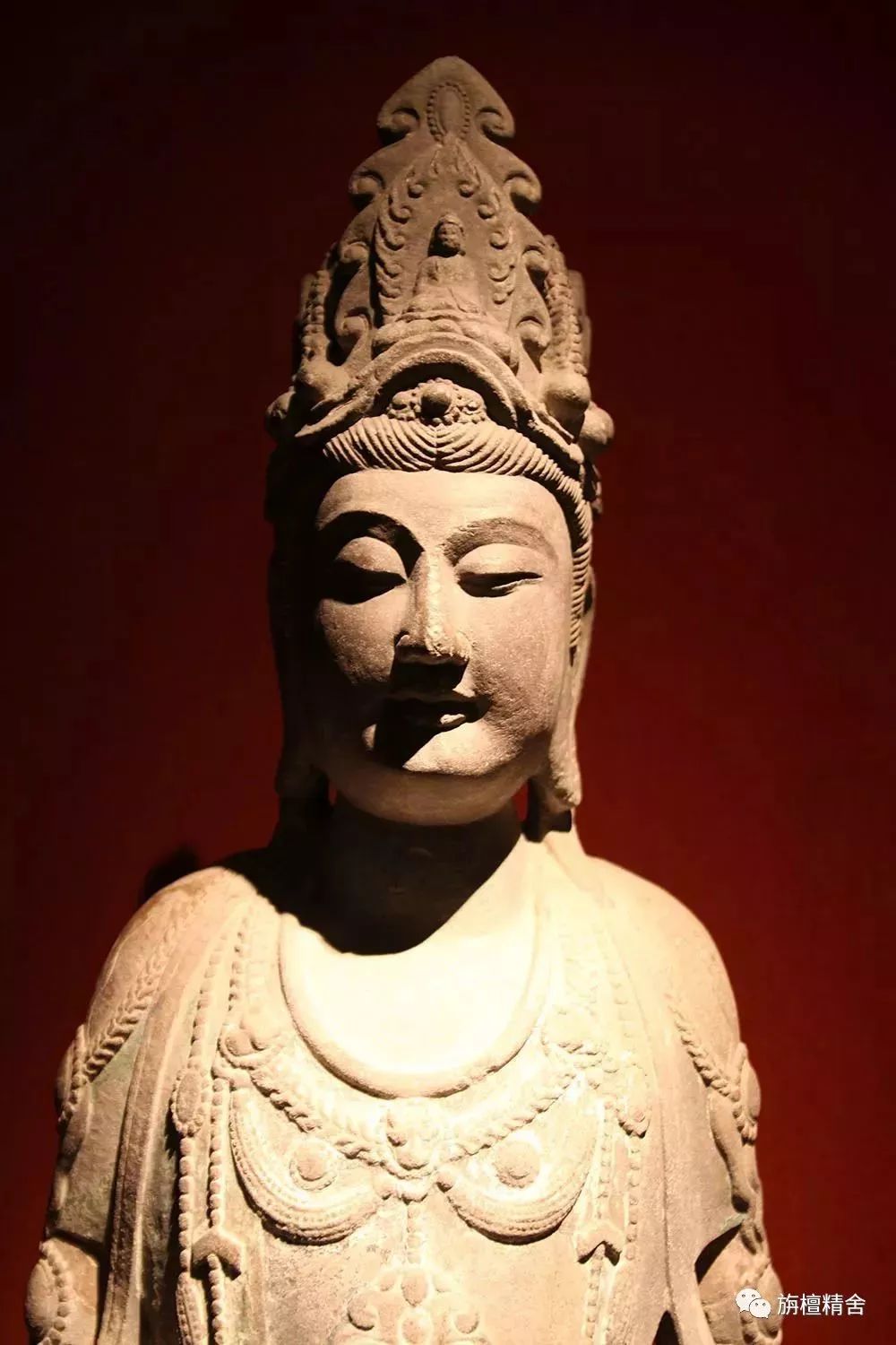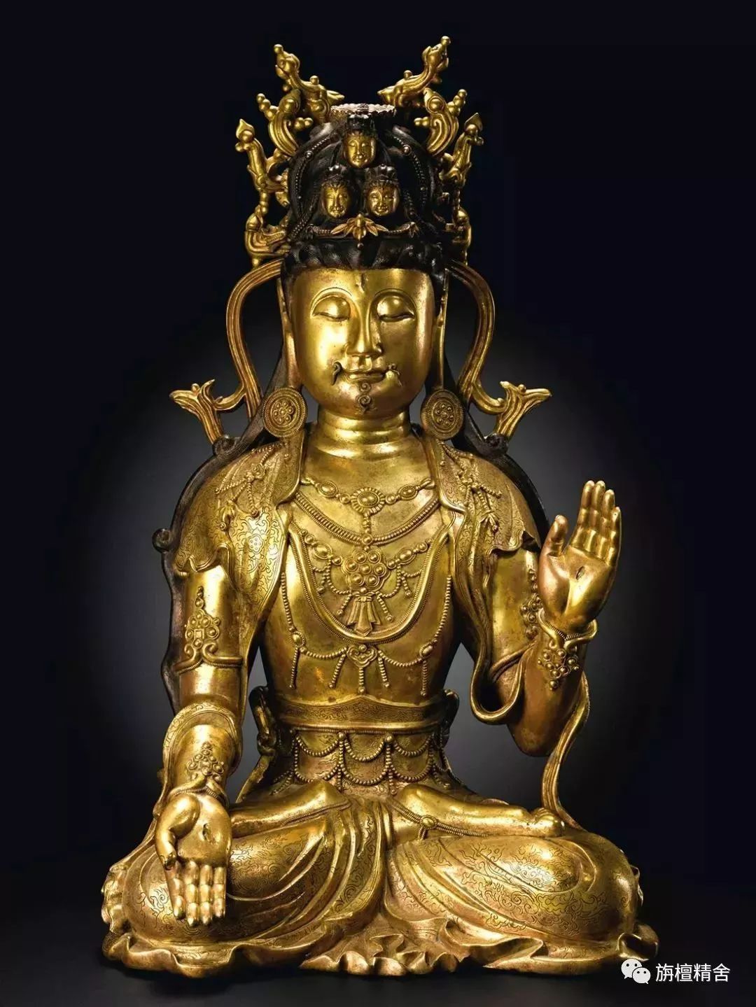 这是一尊极为精美传神的七世纪唐代白檀木雕十一面观音菩萨立像。观音菩萨神态深沉安详、容姿华贵庄严、饰品繁复精美、衣纹简洁流畅,整尊造像高贵典雅,慈悲庄严、大气舒展,精准再现了有关记载十一面观音造像法的经典原貌。这尊十一面观音像也成为了日本流传至今的十一面观音菩萨像的模板。