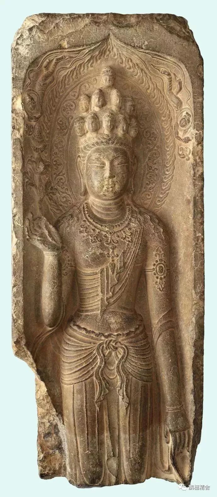 唐代石雕 十一面观音菩萨像
