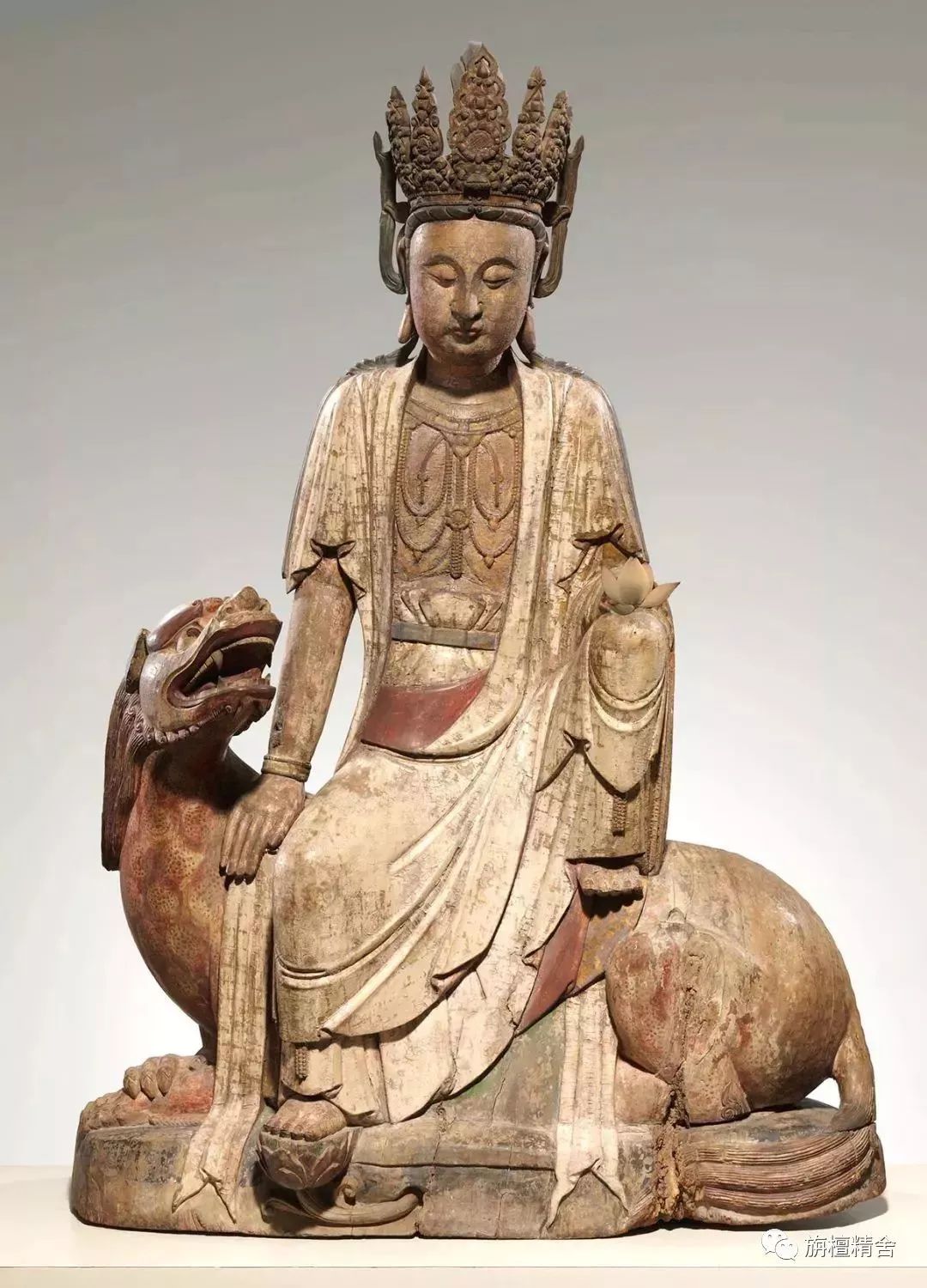 明代彩绘木雕:狮吼观音像