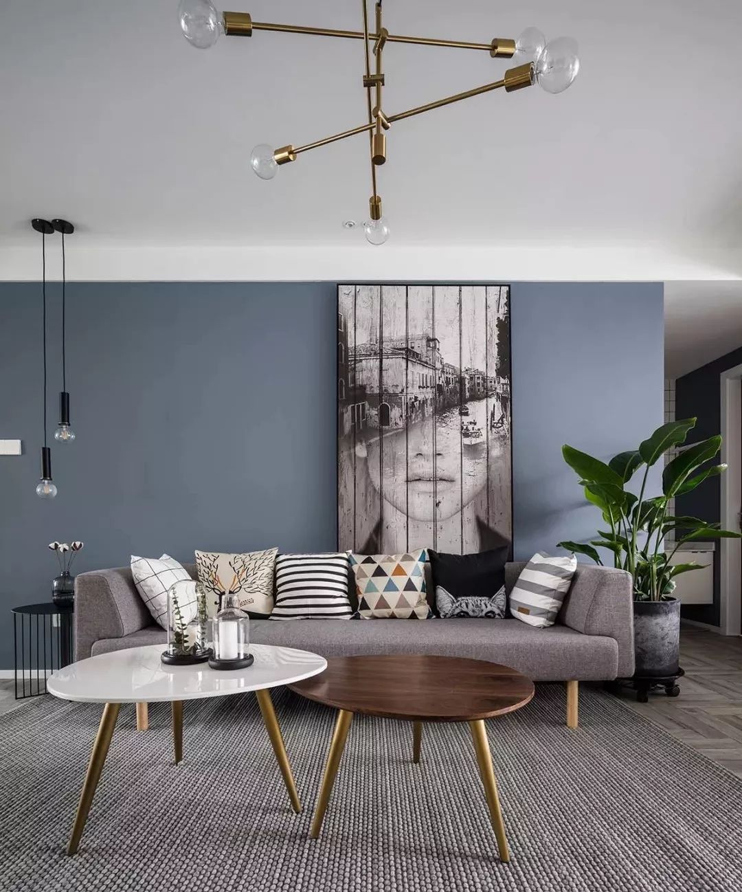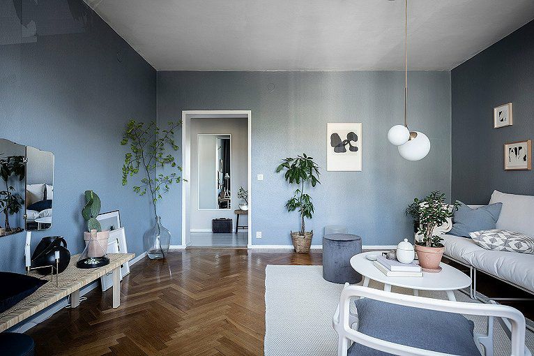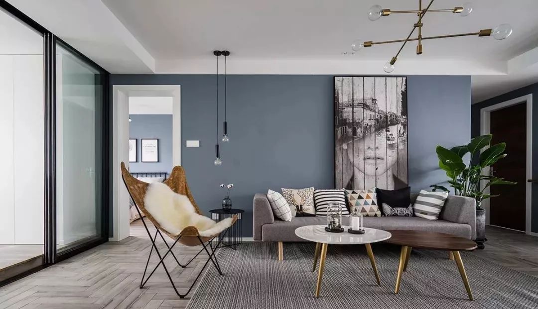 钟爱灰蓝色是因为它有着蓝色的魔力和灰色的高级,用它来装饰客厅沙发背景墙或者电视背景墙都是极好的,不会过于张扬,也不会显得冷淡。