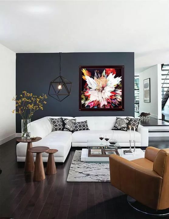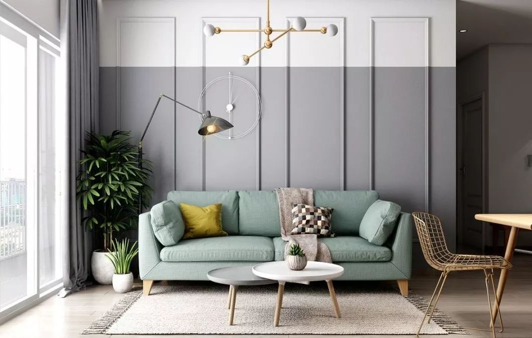 灰色,总给人一种莫名的高级感,它间于白色和黑色之间,比黑色更显活力,比白色更显沉稳,它,从不哗众取宠,深得人们的喜爱,用在客厅墙面,能烘托空间的氛围,让整个客厅看起来高级又具时尚感。