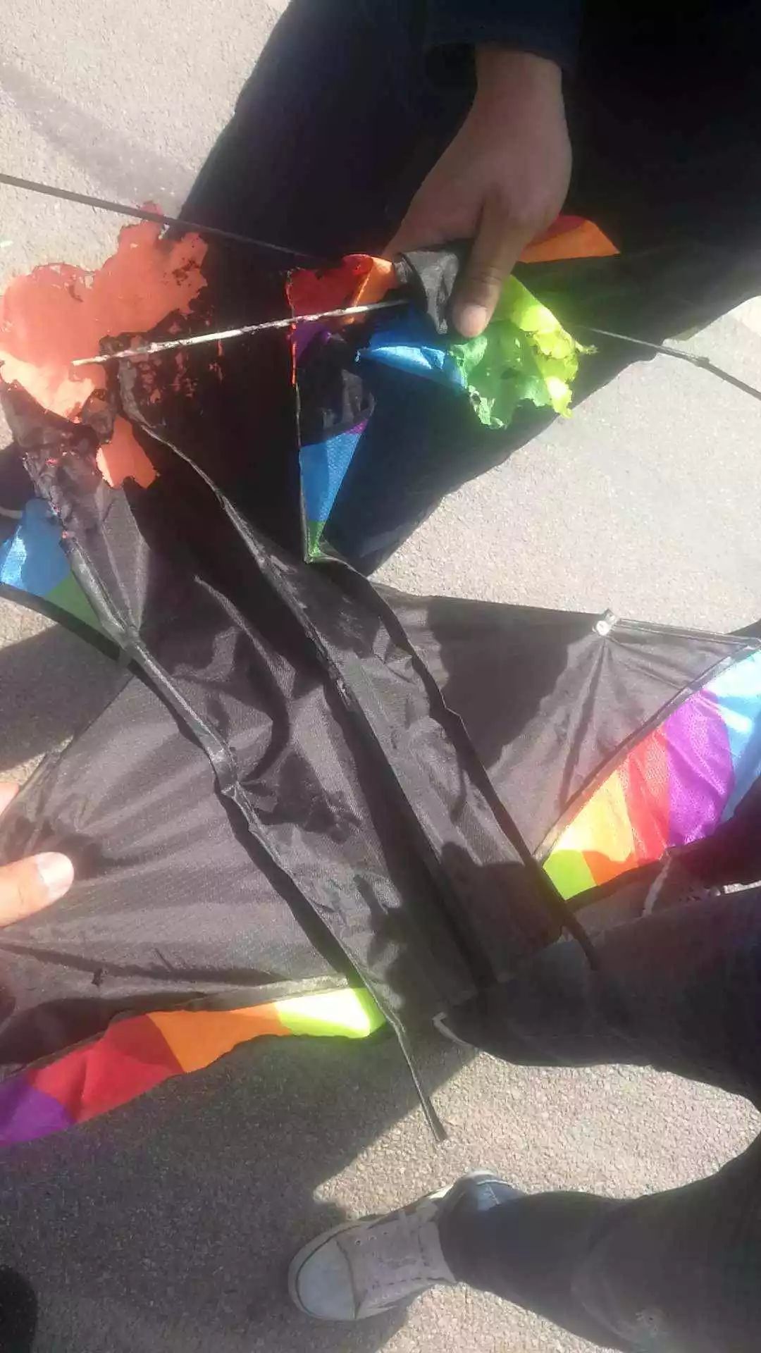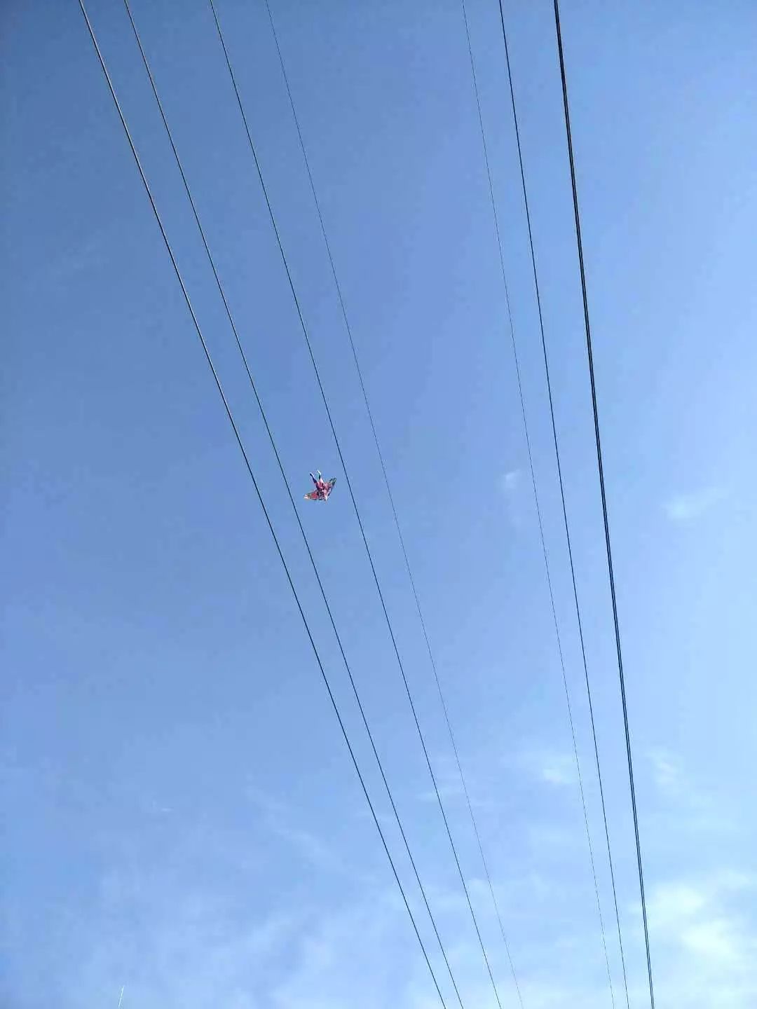 3月24日15:30左右,镇平县供电公司输电运维班运维人员在巡视线路时发现110千伏I 、II雪林线23号-24号、24号-25号杆塔之间的复合地线上分别悬挂有风筝,风筝随风飘动,造成导线对复合地线的安全距离不足,对线路安全稳定运行带来极大的隐患。