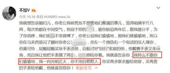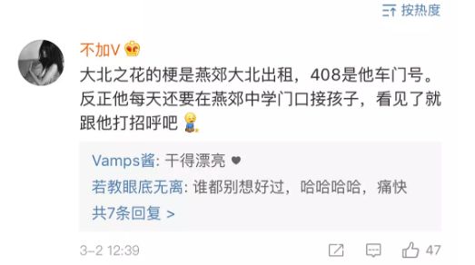 她曝光司机老婆的照片,嫌弃人家土,觉得不如司机和她在一起更般配。这都是低段位的小三才干的事,大名鼎鼎的木老师都干了。