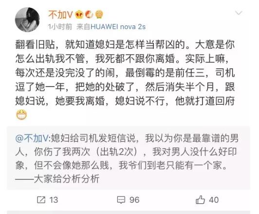 她不仅撕司机,还撕司机的老婆,觉得司机的老婆不管男人出轨,死都不离婚,是帮凶。