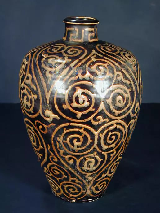 宋代 吉州窑黑釉褐彩仿剔犀纹梅瓶