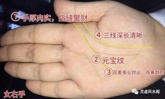 女人的手相要求红润饱满,特别是手掌代表一个人的运势主体,手相就如一个人的身体,好的手相手厚肉实、指缝并拢不漏财,一生钱财不缺衣食无忧。