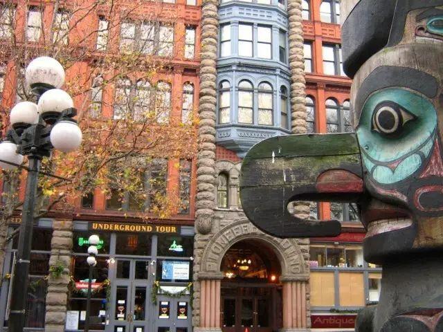2.先锋广场上,以Pioneer Building为代表的老建筑依然矗立,诉说着历史的沧桑。其中最吸引眼球的是那个高大神秘的图腾柱,和Chief Seattle西雅图酋长的半身像,值得一观。
