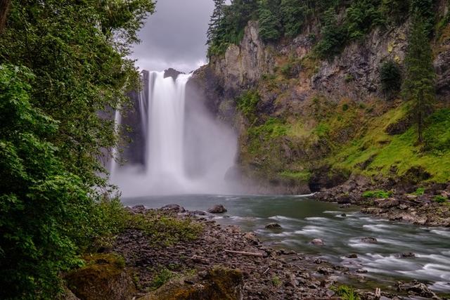你可以沿着古树丛生的步道前行,眼前白色的水幕如闪电劈空,砸在突出的岩石之上,激荡的水花折射出一片片惨烈的白,闪耀着万缕光辉,而汹涌的巨流,气势千钧,重重地落进深潭之中,向大家展现着西雅图的另一种性格。