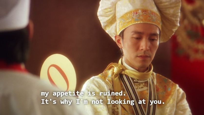 君主是沉稳大气的黄,百官是虚怀若谷的蓝,墙是恍恍惚惚的红,地是气韵深沉的灰。