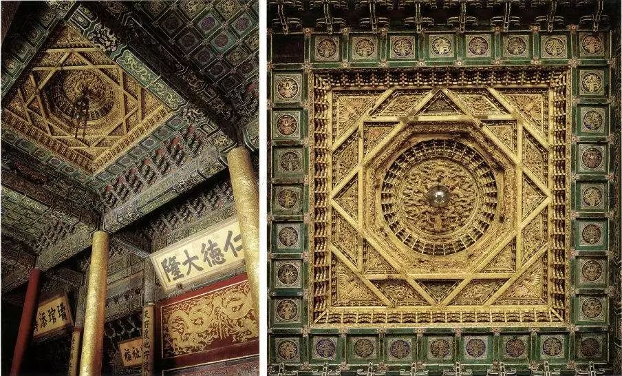 而藻井这个名称,也有源于水的深意,故宫建筑主要为木质,容易起火,而水克火。有一个吉祥消灾的寓意在里面。