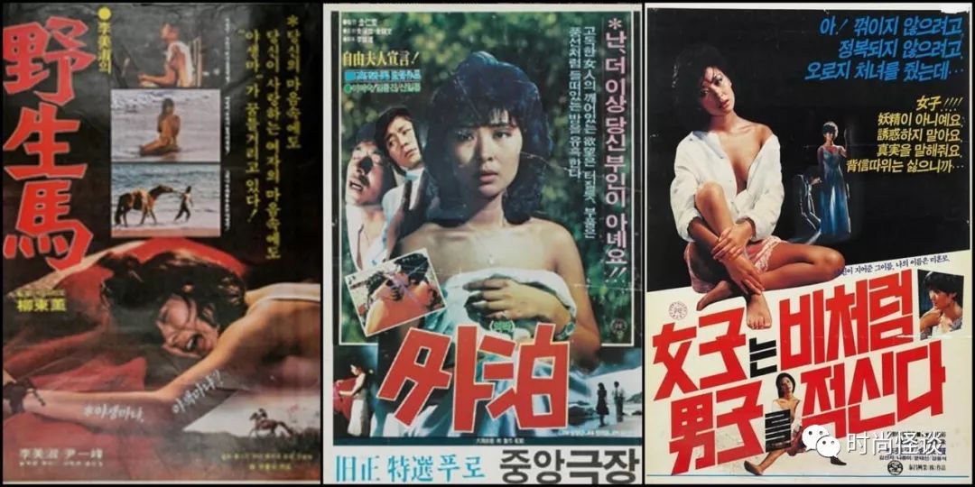 看电影海报,就能体会是在拿什么当成卖点——包括《野生马》(1982年)、《外泊》(1984年)、《女人像雨一样打湿了男人》(1984年)……片名都透露出满满色气。