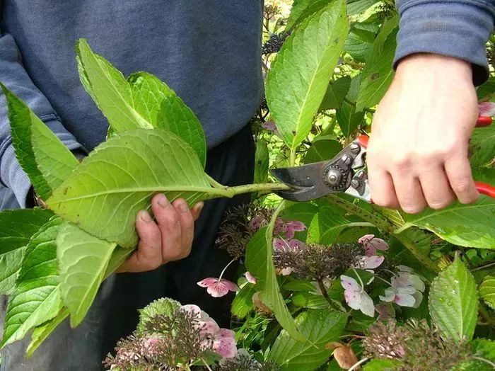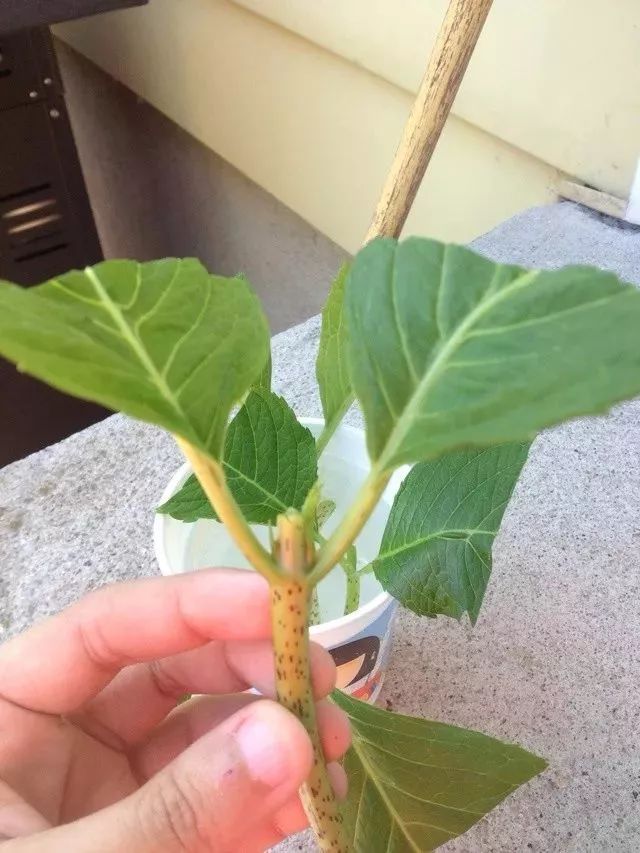 因为绣球花的叶子特别大,在进行扦插之前,叶子一定要处理掉,顶部留下来的一对叶子也要剪掉2/3左右,保留1/3即可,如果叶片太多或太大,会损耗非常多的养分和水分,会影响枝条底部生根。