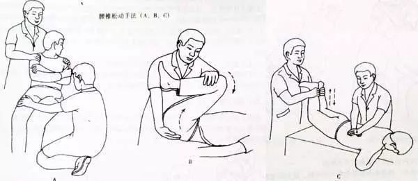 传统推拿:推拿治疗不仅可以松解相关肌肉,改善肌肉组织力学特性,恢复骶髂关节动力性稳定,还可以恢复骶髂关节的运动功能,从而达到恢复骨盆的正常结构和稳定性的目的。举例:范炳华等独创蛙式四部扳法,并结合常规放松手法和腰椎斜扳法治疗骶髂关节紊乱症。蛙式四部扳法包括自体牵引势、屈膝屈髋势、屈髋屈膝外展势和外展后伸扳势。焦玉桥等在《近三年骶髂关节损伤的临床治疗综述》详细的介绍了十几种方法。