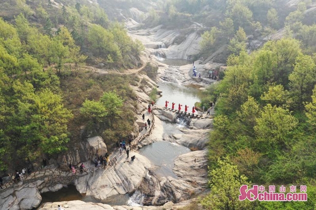 中国山东网4月4日讯(记者 徐从芬 摄影 卧龙老杨)山东济南有七十二名泉,让游人流连忘返;在泉城西南的千里之外,河南方城有个七十二潭,同样名不虚传,美不胜收。3日,由方城县人民政府主办,方城县文化广电和旅游局、凤凰网河南频道承办的“2019全国百家网络媒体走进方城”活动第二站来到美丽的七十二潭,继续“寻美”方城,深入探访有“中华第一石川”之称的七十二潭景区。