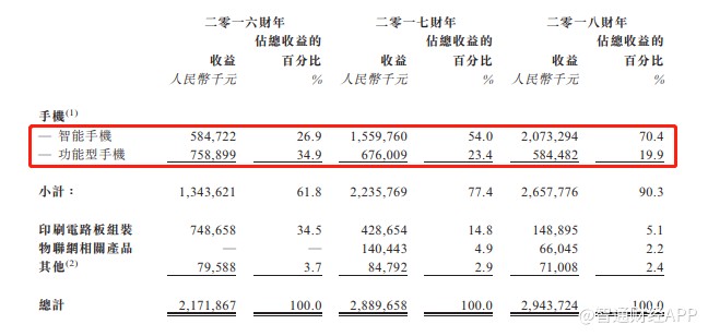 但值得一提的是,当我们以为功能机早已退出历史舞台时,却发现在2016年,禾苗通信的大部分收入仍来自功能机。招股书显示,该公司功能机平均售价为45元人民币(单位下同),智能手机平均售价291元。