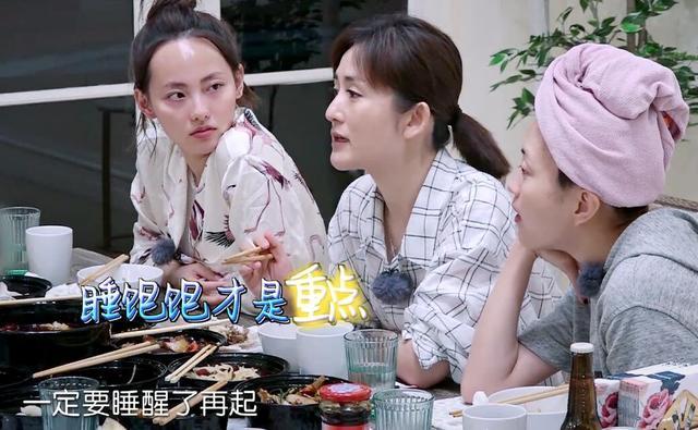 晚间夜聊时,所有人都集体素颜出镜,张嘉倪和谢娜、包文婧同排对比,也要略暗一个色号。