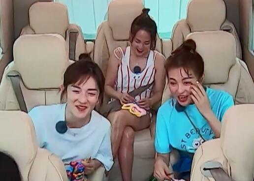 所有人乘车外出时,性格慢热的张嘉倪依然默默坐在尾排,而她黝黑发亮的肤色和谢娜、包文婧更是成了鲜明的反差。