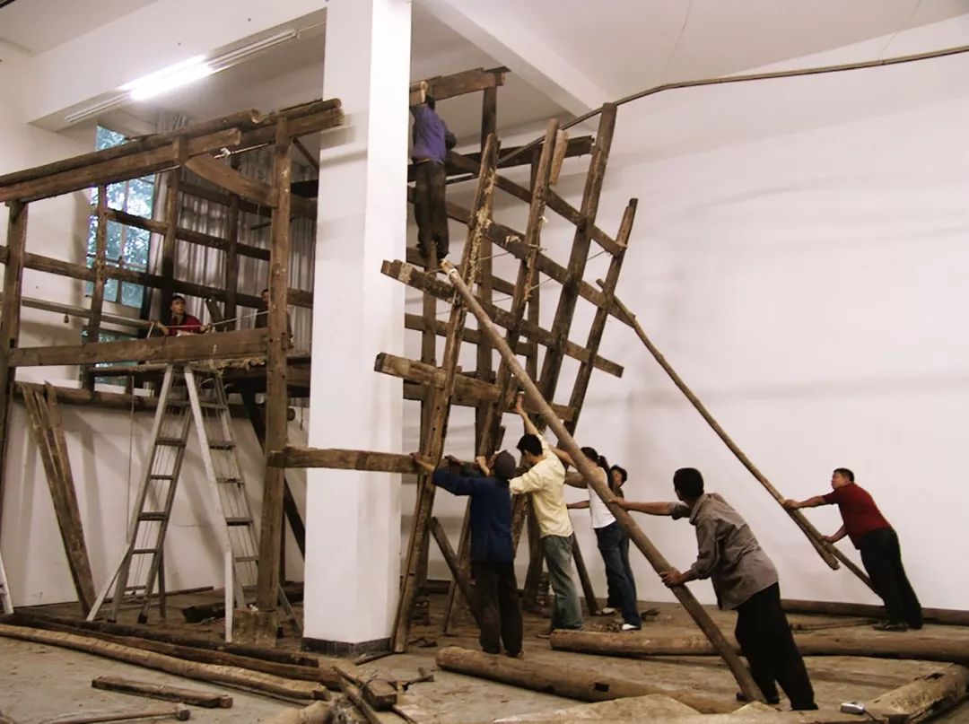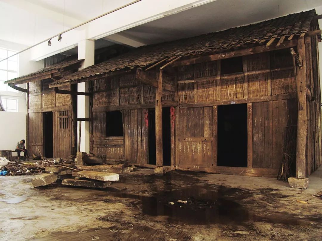 新胜镇上还有一条历史悠久的小街,只有三个铺面,即将被彻底毁灭。为了让人们知道它们曾经存在,我请工人把铺面进行整体“迁移”,在展厅里重现。