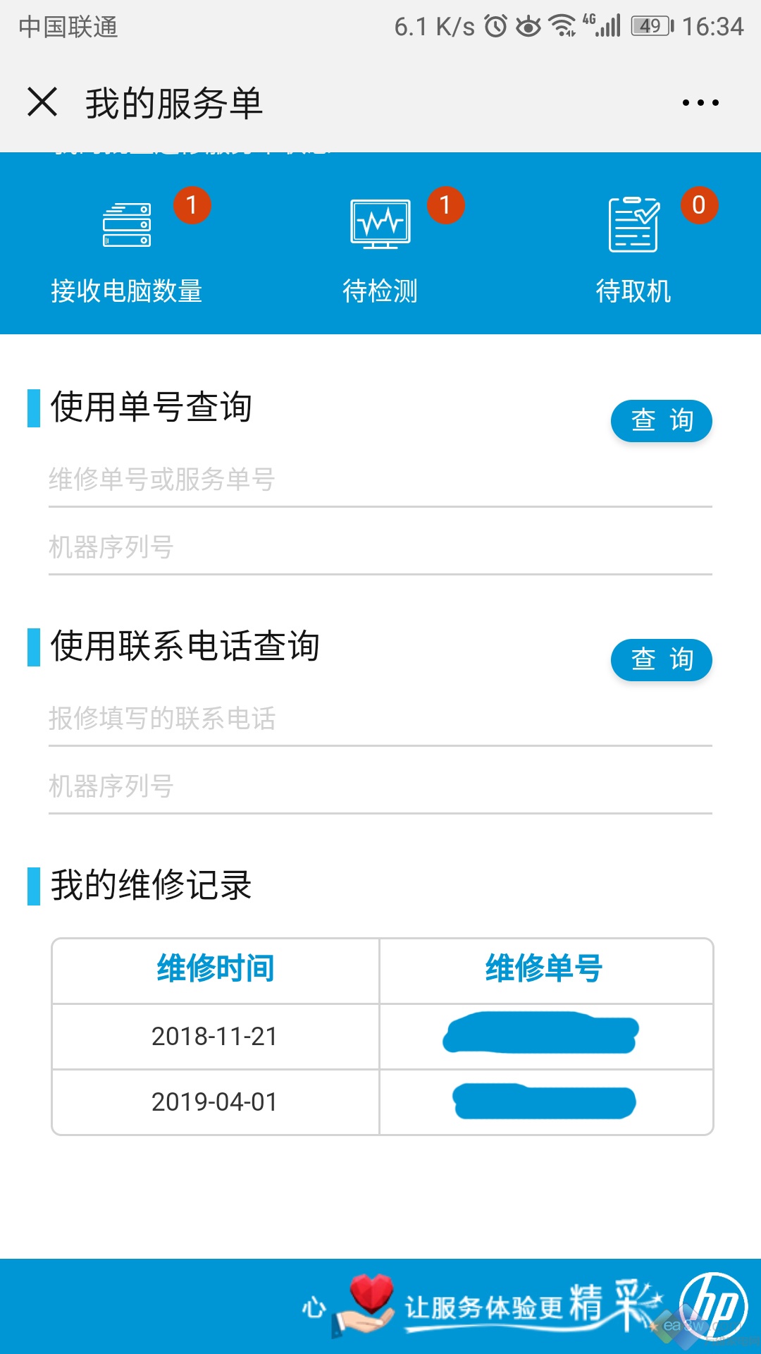 然后就是第二次去惠普的售后,经过工作人员的检查之后,给予的答复是电脑的主板有问题,所以需要给我换一个新主板。当时小编的心情犹如十万只草泥马奔涌而过,但是最后也没有多说什么,然后把电脑放在售后等待维修。