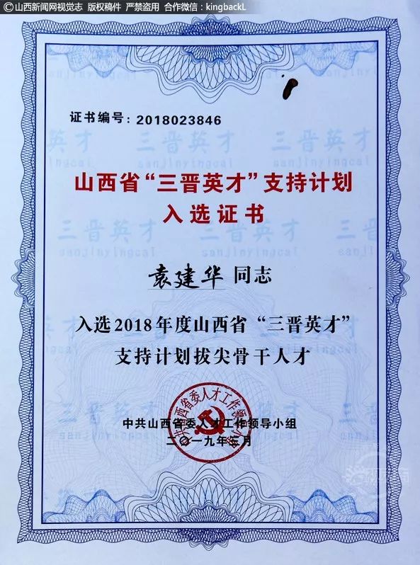 袁建华入选2018年度山西省“三晋英才”支持计划拔尖骨干人才。