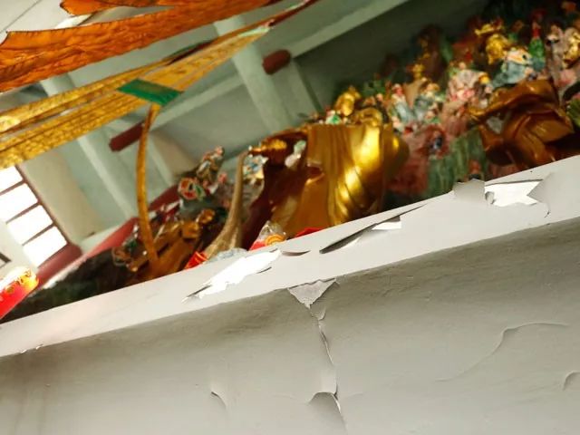 (大雄宝殿内脱落的墙皮)