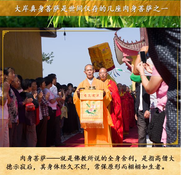 肉身菩萨以身弘法,以身说教,以身度尘,这是接引众生的一种方便。肉身菩萨与众生最有因缘,菩萨转世,教化众生,以身渡尘,为众生广开方便之门,供养皈依,感应众生所愿,信众善求皆能如愿。