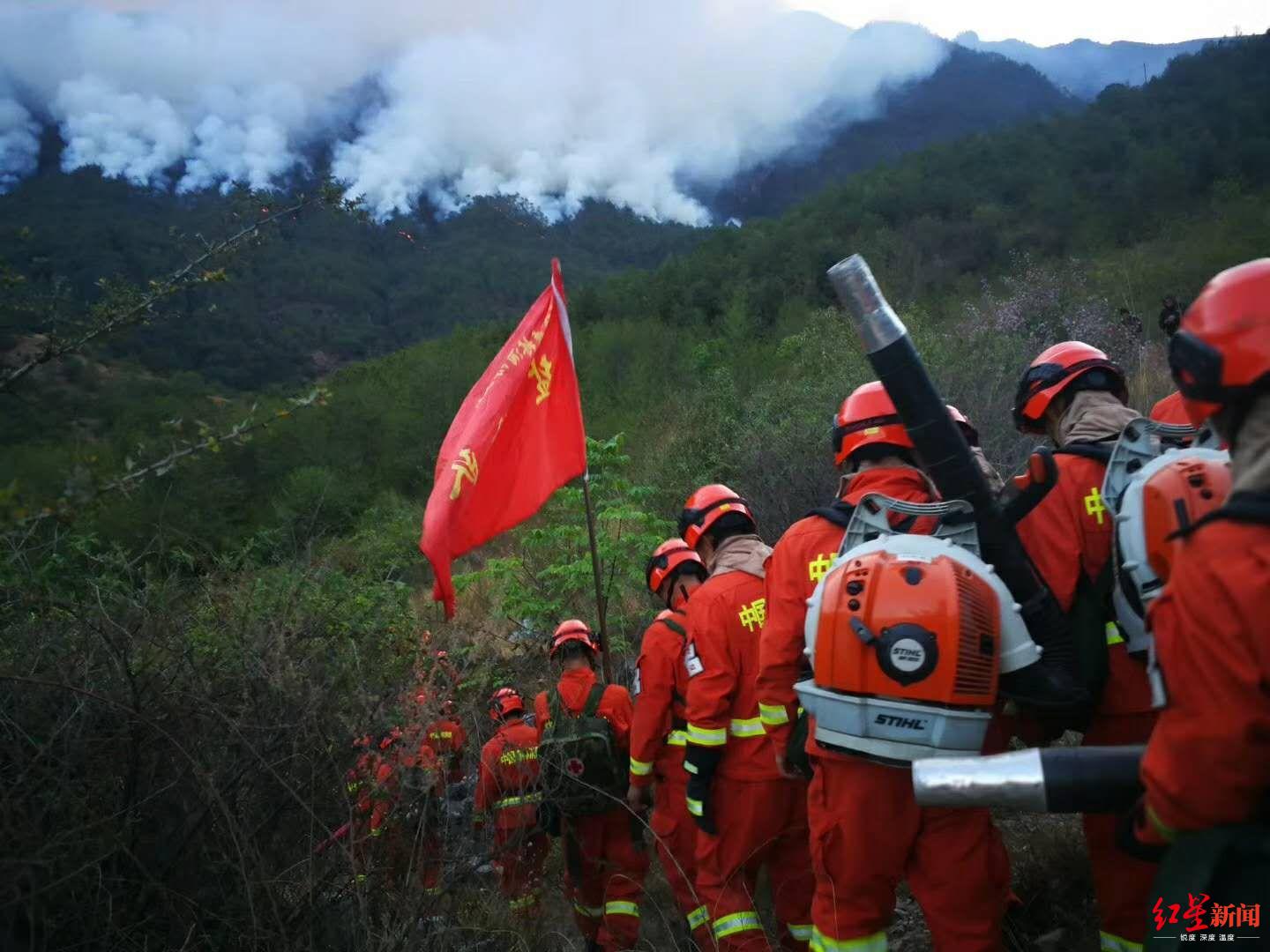 红星新闻记者从火场前线指挥部了解到火场的最新情况,火场山高坡陡,岩多,植被茂盛,目前过火面积约19公顷。