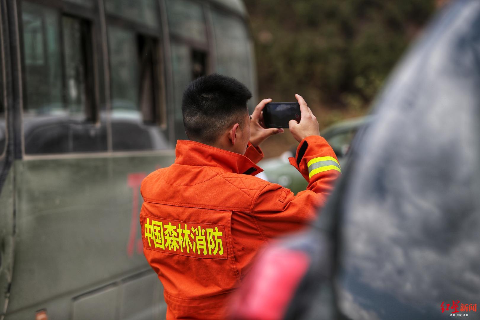 冕宁县森林大火直击去现场扑火的消防员。消防队员回的指挥部对火场拍照