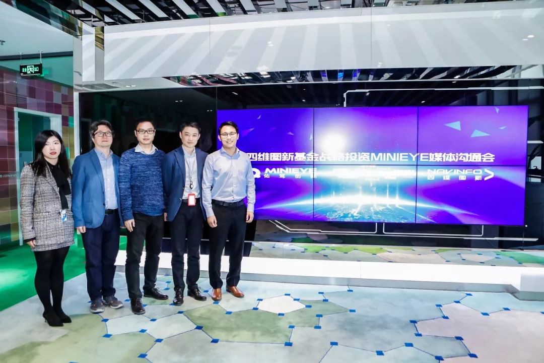 (从右至左)MINIEYE创始人及CEO 刘国清博士、四维图新高级副总裁毕垒、MINIEYE联合创始人及COO 王启程、四维图新副总裁陈牧村、四维图新投资总监窦静宜
