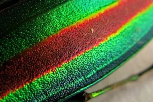 原来,玉虫厨子的边框接口处皆施以金铜透雕的金属部件,镂空的部分用玉虫鞘翅装饰,可惜今日已剥落殆尽,空留下“玉虫”这个美好的名字供人凭吊遐思。那么,究竟什么是玉虫呢?