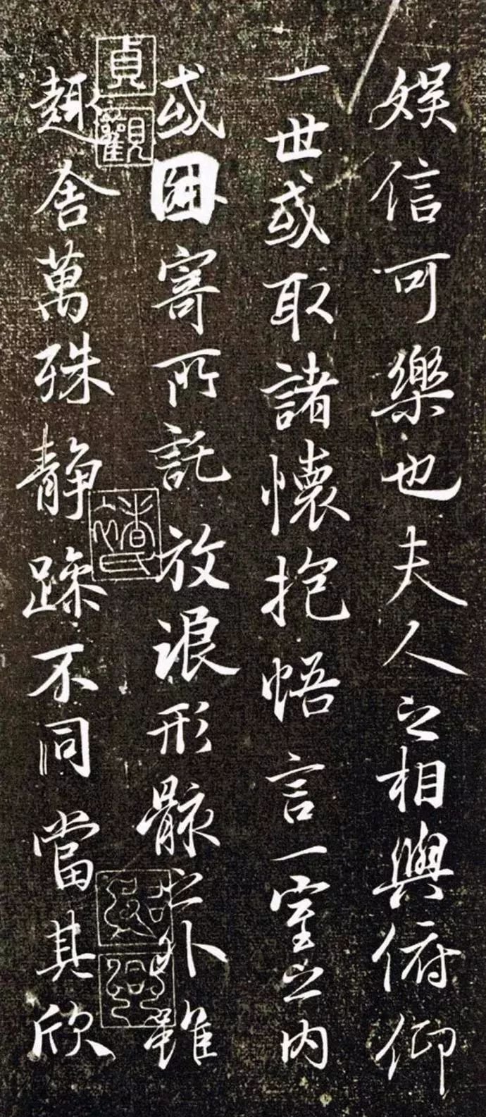 右军将之传给子孙,直至七代孙智永,遗付给辩才,后来被唐太宗「骗」入内廷,唐太宗对他的字着迷不已,曾命搨书人赵模等各搨数本赐给王、臣、真迹则陪他殉葬在昭陵了。武后时,韫桓掘发,真迹又复出,收入玄宗内府,且刻石置于学士院,称为「定武兰序」,经历宋、金而亡。但此本和今天流传下来的墨本各不相同,很难确定究竟原来是什么样子。