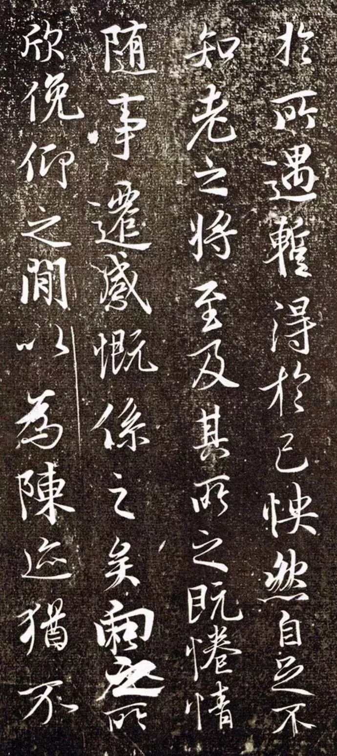 王羲之的行书有如行云流水,其中又以兰亭叙为最极品;晋穆帝永和九年三月三日,右军宦游山阴,与孙统承、谢安等四十一人在会稽山阴的兰亭聚会,修袚褉之礼。饮酒赋诗,由他以特选的鼠须笔和蚕茧纸,乘兴而书写了一篇序,记序盛会,共三百二十四字,其中二十个「之」字名有不同的体态及美感。此帖下笔有如神助,有「遒媚劲健,绝代所无」之誉。