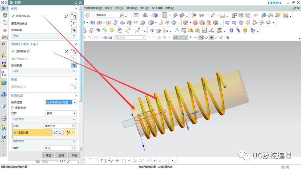 注意扫掠时要选择固定方向,否则截面会随螺旋线扭转。