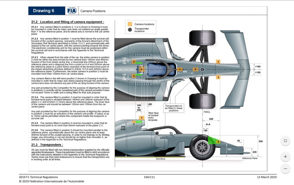 最初,F1 限制的主要是引擎规则,1950 年的首届 F1 只允许使用 3.5L 自然吸气或 1.5L 机械增压引擎,从而让这两种引擎的赛车得以同场竞技。后来随着空气动力学的迅速发展,规则限制最多的变成了空动部件的设计边界。光是技术规则,就有多达上百页密密麻麻的条款,来限制赛车的研发空间,翻译成人话基本就是“这些不能做”、“那里不能有东西”、“这种设计不允许”、“那样是违规的”……
