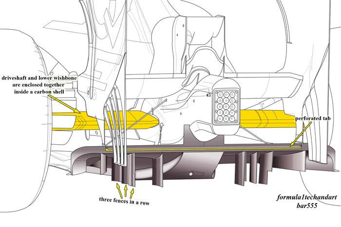但规则是人定的,就难免会出现漏洞。F1 技术规则中的漏洞,有时会使得弱势车队异军突起,也可能会被 FIA 解读为违规而被抓典型(这其中的车队政治博弈也是 F1 的一大看点,限于篇幅这方面不细说)。前者的典型是 2009 年,布朗车队利用双层扩散器的规则漏洞一骑绝尘,彻底打乱了赛场强弱格局并最终夺冠。后者的最近例子是 2006 年,雷诺车队的质量避震器被禁用,这件事引起的争议至今无解。