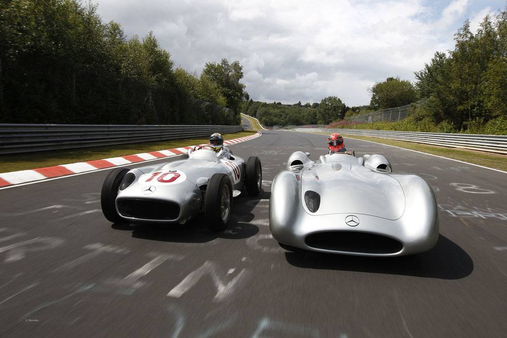 (右:封闭车轮的奔驰 W196 Steamliner,1954)