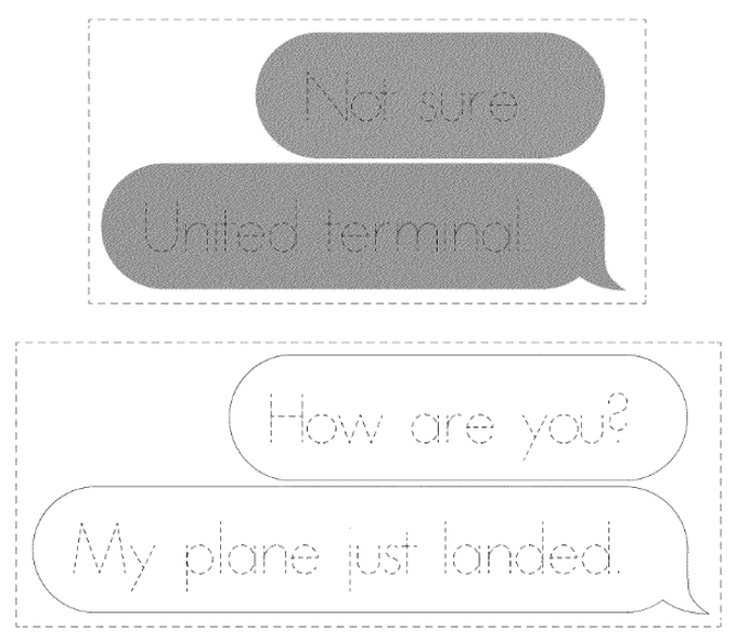 为了区分消息,苹果在发送短信的聊天框上,加上了一条小尾巴,而当快速连续的发送会接收到多条短信时,只有最后一条消息会显示尾巴。苹果认为这是设备信息中的标志性部分,所以也为这个泡泡聊天形状申请了专利。