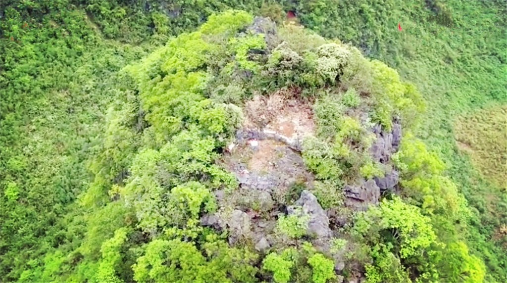 广西的贺州是湘、粤、桂交界地,山区多,森林的覆盖率也大,很多自然旅游资源都未开发,有着原生态的美!一位驴友贺州游玩时,发现一座陡峭的石头山十分奇特,四面都是绝壁,没有小路可以上山,但是航拍时,却发现山顶上有人工的痕迹,为什么呢?